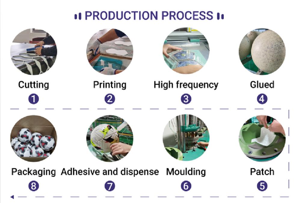 Proses pencetakan bola sepak biasa mengutamakan "keanjalan seragam." Selepas inflasi, pundi kencing dalam menjalani ujian tekanan pelbagai untuk memastikan keanjalan yang konsisten sepanjang bola. Kulit luar sering disertai menggunakan ikatan haba atau jahitan tangan. Bola bola sepak yang dijahit tangan mempunyai jahitan yang lebih baik, ketegangan udara yang lebih baik, dan lebih banyak lagi penghantaran keanjalan, dan biasanya digunakan dalam pertandingan profesional. Bola bola sepak terikat haba, dengan kecekapan pengeluaran yang tinggi dan kos yang boleh dikawal, telah menjadi pilihan arus perdana untuk latihan massa dan sekolah Pu Bola Sepak Terikat Terbitan Pu .